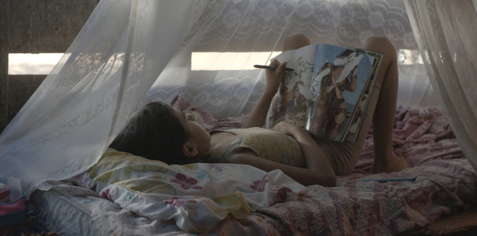 Outra recorrência no filme são justamente as imagens que remetem a sexualidade dos corpos. Seja Galega (Maeve Jinkings) dançando em uma boate cheia de homens que parecem completamente enlouquecidos por ela, seja ela flertando com um vendedor de calcinhas ou Iremar abrindo uma revista pornô melecada de porra; até as cenas de sexo de fato. Uma delas, com os bois ao fundo, mugindo. O que Mascaro quer dizer?